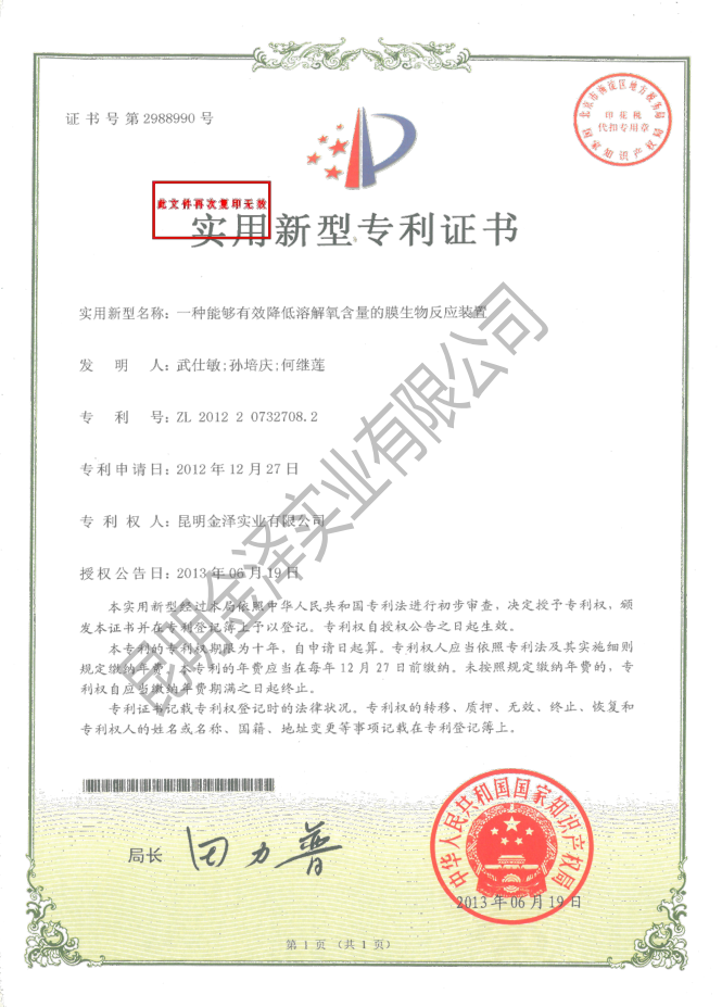 一種能夠有效降低溶解氧含量的膜生物反應(yīng)裝...