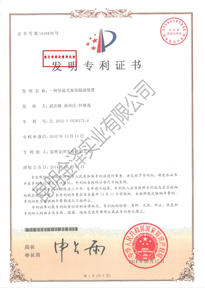 一種導(dǎo)流式高效隔油裝置(專利)